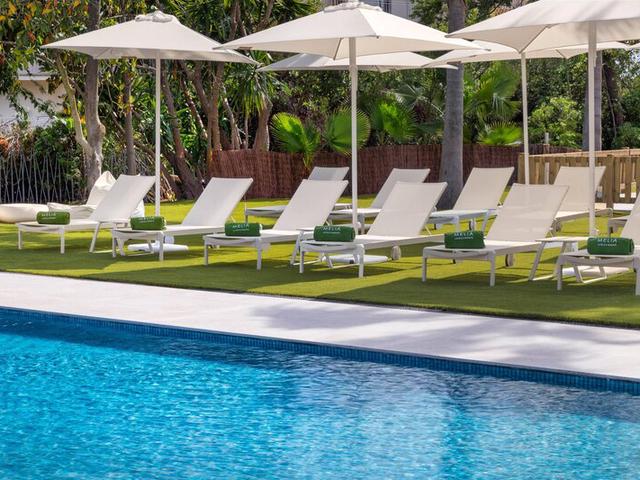 Ausstattung: Garten, 2 Pools, Kinderpool. Liegen, Schirme, Handtücher am Pool (geg. Geb.), Pool-/Snackbar. Empfangshalle, Rezeption, Lobby-Bar, Safe (geg. Geb.), TV-Lounge. 3 Restaurants (Buffet & à la carte) mit mediterranen Speisen, 2 Bars, Cafeteria, Parkplatz (geg. Geb.). 200 Zimmer, 7 Etagen.