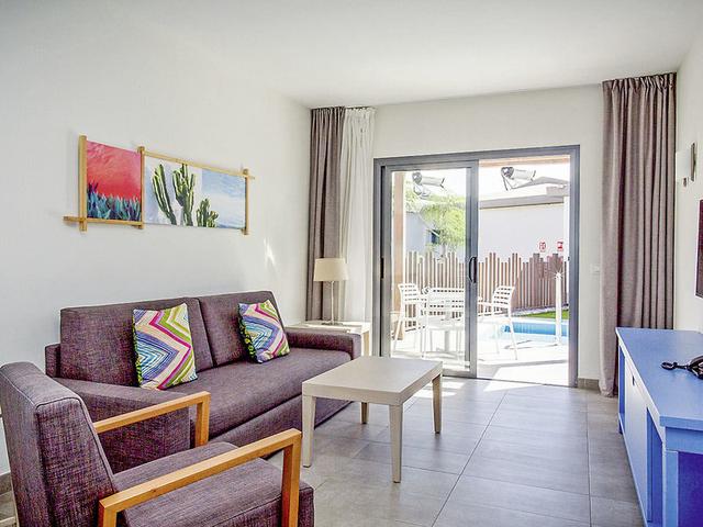 Juniorsuite (JS, ca. 42 qm, renoviert), Klima, Schlafsofa, sep. Schlafzi., Kitchenette, TV, WLAN, Mietsafe. DU/WC, Föhn. Terrasse. Max. 3E+1K, wahlweise Juniorsuite für Erwachsene mit privatem Pool (JSP, bis 31.10.25) buchbar. Max. 3E