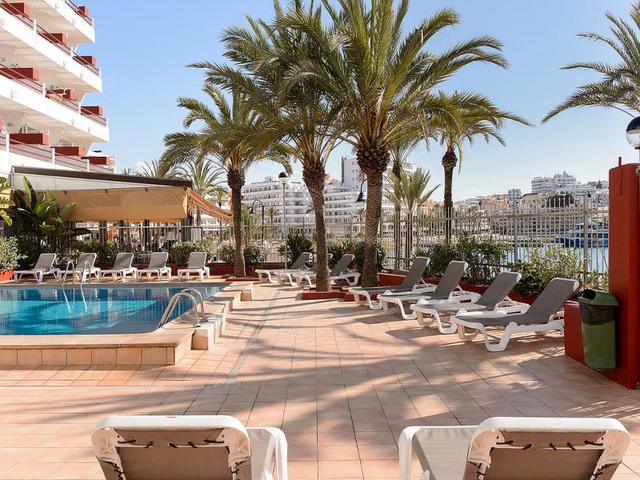 Die Apartments liegen nur wenige Schritte vom Sandstrand entfernt. Die Anlage ist umgeben von zahlreichen Restaurants, Bars, Diskotheken und Geschäften. Es ist ein idealer Ort, um das Nachtleben von Ibiza ausgiebig kennen zu lernen. Öffentliche Verkehrsmittel erreichen Sie nach wenigen Metern. Der Apartmentkomplex verfügt auf 4 Etagen über insgesamt 81 Apartments. Er bietet Ihnen einen einladenden Empfangsbereich mit Wechselstube und 3 Aufzügen. Zudem gehören zum Komplex ein gemütliches Café und eine Bar. Alle Apartments sind einfach und hell eingerichtet. Sie bieten Ihnen ein geräumiges Badezimmer mit Badewanne und Duschvorrichtung. Darüber hinaus sind sie mit einem kombinierten Wohn-/Schlafraum, einem separaten Schlafzimmer, einer Kochnische mit Kühlschrank, Tee-/Kaffeebereiter, Klimaanlage sowie einem Balkon oder einer Terrasse ausgestattet. Es werden Direktwahltelefon, TV und Mietsafe angeboten. In der schön gestalteten Außenanlage befinden sich ein Swimmingpool mit Kinderbecken sowie eine Sonnenterrasse mit Liegestühlen und Sonnenschirmen. Zudem besteht die Möglichkeit, Tischtennis und Billard zu spielen. Am Strand stehen außerdem gegen Gebühr Liegestühle und Sonnenschirme zur Verfügung.