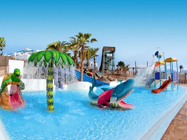 Unterhaltung: Großer Aquapark (6.000 qm) mit insgesamt 7 Wasserrutschen, u. a. 2 "Kamikaze-Rutschen", einem "Fluss" und mehreren Aktionspools, Liegen und Sonnenschirmen (Eintritt und alle Attraktionen inklusive)
