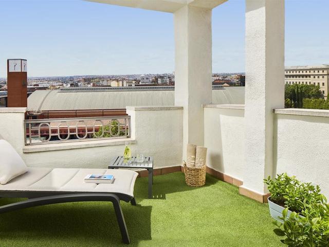 Lage & Umgebung Das Hotel liegt gegenüber dem Bahnhof Atocha, einem AVE-Bahnhof (Hochgeschwindigkeitszug), und in der Nähe des neuen Busbahnhofs Süd (Méndez Álvaro). Das Prado Museum, die Thyssen-Sammlung und das Kunstzentrum Reina Sofía sind bequem zu Fuß zu erreichen. Es ist auch nicht weit bis zum Retiro-Park.