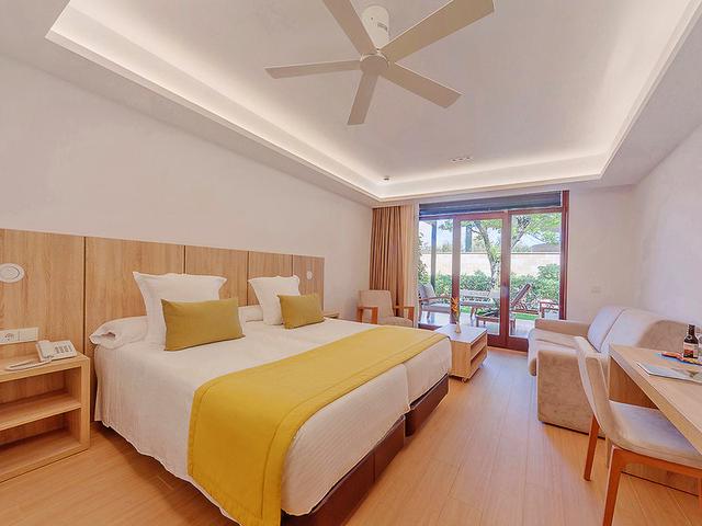 Doppelzimmer "Village Plus" (bis 09.11.25; DZP, ca. 32 qm), renoviert, Klimaanlage, Ventilator, TV (40 Zoll),Telefon, WLAN (inkl.), Safe. Badezimmer mit Dusche, WC, Föhn. Balkon/Terrasse. Max. 3E+1K, auch zur Alleinnutzung buchbar (DEP)