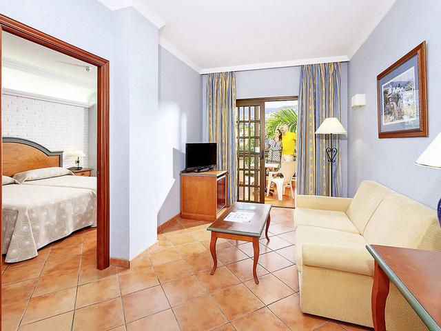 Wohnen: Suite (SU, ca. 40 qm), sep. Schlafzimmer, Wohnraum, Schlafsofa, Klimaanlage, kleiner Kühlschrank, Wasserkocher, TV, WLAN, Telefon, Safe. Dusche/WC, Föhn. Balkon, wahlweise mit Teideblick (SUT) oder direktem (SUM) Meerblick. Max. 3E, zur Alleinnutzung buchbar (SUE, SET, SEM)