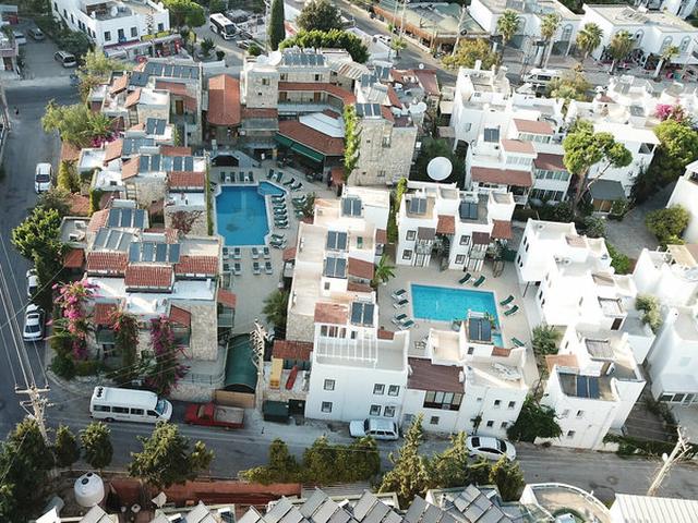 Die Apartmentanlage befindet sich ca. 100 m vom Strand und vom Zentrum Gümbets mit zahlreichen Einkaufs- und Geschäftsmöglichkeiten entfernt. Es ist ein idealer Ausgangsort um die Sehenswürdigkeiten der Stadt, wie das Schloss Bodrum oder das Amphitheater zu besichtigen. Nach Bodrum sind es etwa 2 km. Zur Bucht von Bitez sind es ca. 10 min mit dem Minibus. Der Flughafen von Bodrum ist ca. 45 km entfernt.