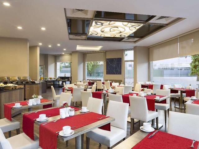 Das Hotel Ramada Plaza By Wyndham Izmir befindet sich ca. 3 km von Izmir entfernt (Cesme ca. 89 km, Kusadasi ca. 99 km). Einkaufsmöglichkeiten liegen ca. 1 km vom Hotel, ein Supermarkt ist nach ca. 200 m zu erreichen. Die nächstgelegenen Bars und Restaurants erreichen Sie ebenfalls nach rund 200 m. Auch die nächste Diskothek liegt rund 200 m entfernt. Folgende Sehenswürdigkeiten sind vom Hotel aus erreichbar: Izmir International Fair (ca. 50 m), Kadifekale (ca. 3 km) und Archeology Museum (ca. 3 km). Für Mobilität im Urlaub sorgen neben einem Mietwagen-Verleih auch ein Taxistand (ca. 10 m). Weiter entfernt gelegene Orte lassen sich über den Bahnhof in rund 200 m Entfernung erreichen. Zwischen Hotel und Flughafen verkehrt ein Shuttle (gegen Gebühr).