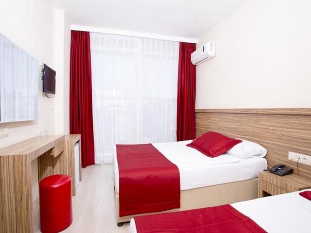Das Hotel verfügt über: Restaurant, Bar, Schwimmbad, Hallenschwimmbad, Fitnessraum, Spa (kostenpflichtig), türkisches Bad (kostenpflichtig), Sauna (kostenpflichtig), Wi-Fi, Sitzungszimmer, Lift/Aufzug und Empfang 24/24. Die Zimmer sind ausgestattet mit: Telefon, TV, Schliessfach (kostenpflichtig), Minibar (kostenpflichtig), Klimaanlage, Balkon, Haartrockner und Badezimmer. Hinweis: Bitte beachten Sie, dass einige der Annehmlichkeiten/Services teilweise wetterbedingt oder saisonbedingt nicht zur Verfügung stehen. Hinweis: Das Alles-Inklusive Konzept beinhaltet alle Mahlzeiten (Frühstück, Mittagessen, Abendessen und Snacks), sowie die Getränke zu den Mahlzeiten wie alkoholfreie Getränke und Bier, Wein und andere alkoholische Getränke lokaler Marken. Getränke werden von morgens bis abends um ca. 22.00/24.00 Uhr serviert. Die Öffnungszeiten variieren von Hotel zu Hotel. In einigen Hotels ist ein Unterhaltungsprogramm ebenfalls inklusive. Address: Yavansu Mah. Sezin Sokak No 6, 09400 Kusadasi, Turkey.