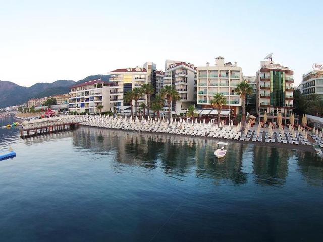Das Hotel befindet sich direkt am Strand, in Marmaris. Das Stadtzentrum mit zahlreichen Einkaufs- und Unterhaltungsmöglichkeiten sowie Restaurants und Bars erreichen Sie nach ca. 2 km. Öffentliche Verkehrsmittel sind ca. 350 m entfernt. Die Entfernung zum Flughafen von Dalaman beträgt etwa 98 km.