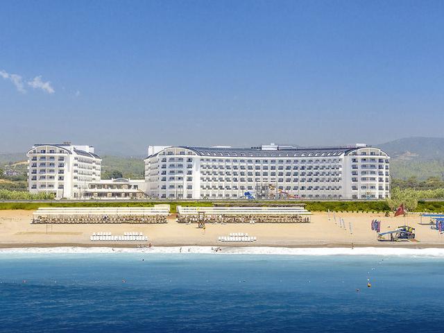 Ausstattung: Swimmingpool, 6 Wasserrutschen (stdw.), Sonnenterrassen. Liegen, Sonnenschirme, Badetücher. Pool-/Strandbar. Empfangshalle, Rezeption, Lobbybar. WLAN im Lobbybereich. Hauptrestaurant, 2 À-la-carte-Restaurants mit osmanischer und italienischer Küche (jeweils mit Reservierung). Arztservice (gegen Gebühr), Gameroom (jeweils gegen Gebühr). Geschäfte, Patisserie, Diskothek. Landeskategorie: 5 Sterne, 305 Zimmer, 7 Lifte.
