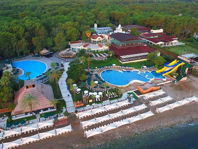 Lage: Umgeben von Pinienbäumen, direkt am hoteleigenen Strand (Sand, mit Kies durchsetzt). Das Zentrum von Kemer liegt ca. 15 km entfernt.