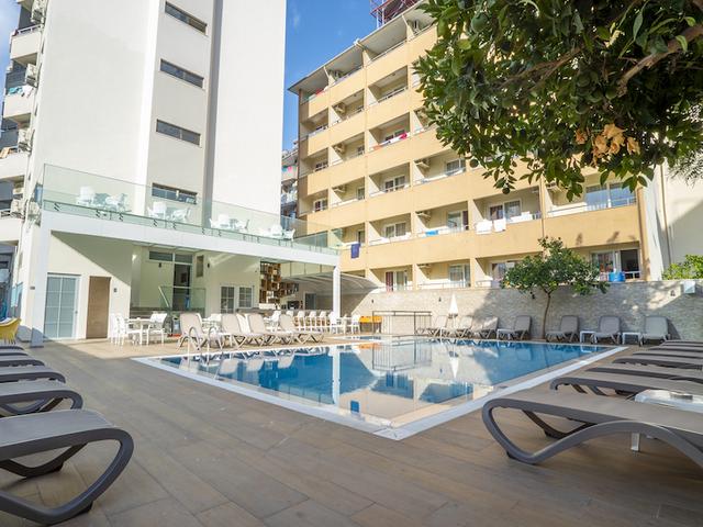 Ausstattung: Überschaubares Ferienhotel. Swimmingpool mit Kindebecken, Sonnenterrasse und Poolbar. Liegen, Auflagen, Schirme und Badetücher am Pool (am Strand gegen Gebühr; Badetuchwechsel gegen Gebühr). Rezeption (24 Stunden) mit Mietsafe, Lobbybar, Restaurant mit Außenterrasse, TV-Ecke. WLAN im gesamten Hotel. Landeskategorie: 4 Sterne, 65 Zimmer.