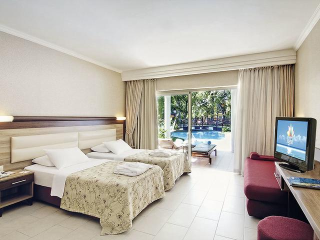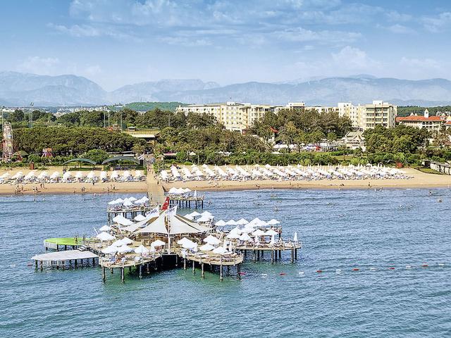 Ausstattung: Beliebtes Komforthotel. Haupthaus (HH), Annex, Villenbereich (VB). Weitläufige Poollandschaft, 6 Pools, sep. Aquapark, Pool-/Snack-/Strandbar. Liegen, Schirme (am Strand Sonnendächer), Badetücher am Pool und am Strand. Pavillons am Strand (geg. Geb.). Kleiner Vergnügungspark (stdw., geg. Geb.). Empfangshalle, Rezeption, WLAN (Zimmer, Lobby, Rezeption), Hauptrestaurant, 6 À-la-carte-Restaurants (teilw. 15.06.-15.09., geg. Geb.), Bars, Geschäfte, Diskothek. Landeskategorie: 5 St., 760 Zi., 5 Etg., 7 Lifte (HH).