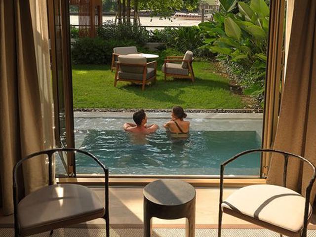 - Riverfront Verandah (DZX3), Nichtraucherzimmer, im Hauptgebäude, Flussseite, Flussblick, ca. 137 m², Gesamtanzahl der Räume in diesem Zimmertyp: 1, Aufteilung wie folgt: kombiniertes Wohn-/Schlafzimmer, 1 King Size Bett (203x203cm), 1 Schlafsofa, Babybett: ohne Gebühr, Anfrage & Reservierung notwendig, Klimaanlage: ohne Gebühr, individuell regelbar, kalt, Fußboden: Teppichboden, Parkett, Safe: ohne Gebühr, Deckenventilator, Sitzecke, Sofa, Schreibtisch, Kühlschrank: ohne Gebühr, Nespressomaschine, Kaffee-/Teezubereiter, Wasserkocher, Minibar: gegen Gebühr, Softdrinks: ohne Gebühr, Wasser: ohne Gebühr, alkoholische Getränke: gegen Gebühr, Snacks: gegen Gebühr, Minibarauffüllung: täglich, Telefon, Internet: WLAN/WiFi: ohne Gebühr, Fernseher: Flatscreen, im Schlafzimmer, Deutsche Welle, Sat-TV, Kabel-TV, Roomservice: täglich 24 Stunden, gegen Gebühr, Butlerservice: täglich, ohne Gebühr, Reinigungsservice: täglich, ohne Gebühr, Tageszeitung: ohne Gebühr, Sprachen: englisch, separate Dusche, Regendusche, Badewanne im Zimmer, WC, Bademantel: ohne Gebühr, Slipper: ohne Gebühr, Föhn, Kosmetikspiegel, Terrasse: mit Liegen, mit Sitzgelegenheit, Veranda, mit Whirlpool