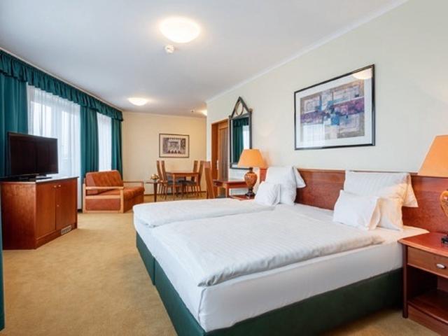 Hotelausstattung: Rezeption mit Safe, Lift, Restaurant, Gesellschaftsraum, hoteleigener Parkplatz, Sommerterrasse, modernes Balneo-, Relax- und Wellnesszentrum: Schwimmbad (ca. 3,5 x 7 m, 30-32°C) mit Gegenstromanlage und Whirlpool, Massageliegen, Kreditkartenakzeptanz, Wechselstube, Bademantelverleih, Wertsachenaufbewahrung. Haustiere sind nicht erlaubt. Gegen Gebühr: Sauna, Kosmetiksalon, Friseur, Maniküre, kameraüberwachtes Parkhaus (ca. 6 EUR/ Tag, Reservierung erforderlich).