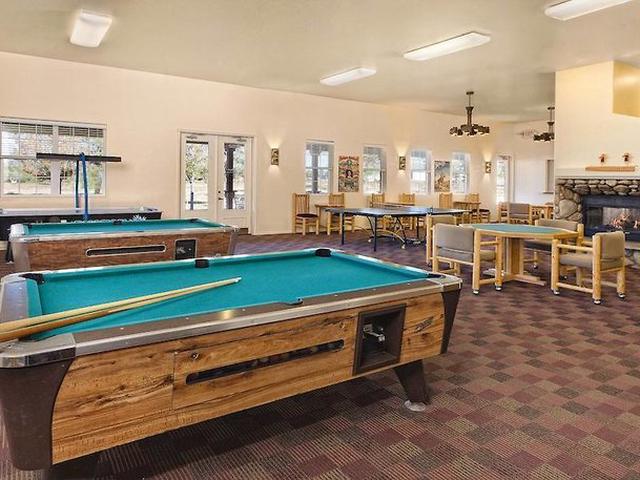 Sobald Sie die überlebensgroßen Statuen des bockenden Broncospferdes am Eingang des Bison Ranch Resorts passiert haben, wissen Sie, dass Sie sich auf guten, altmodischen Wildwest-Spaß gefasst machen können. Mit 160 Hektar unberührter Hochwüste und umliegendem Wald fängt dieses wunderschöne Refugium die Essenz des entspannten Lebens im Westen perfekt ein. Das Resort bietet einen Außenpool und Spa, ein Kinderbecken, ein Fitnesscenter, einen Tennisplatz, einen Spielplatz, ein Spielzimmer und einen gut gefüllten Teich zum Angeln (Fangen und Freilassen). Im Herzen des Resorts repliziert Bison Town den Wilden Westen der 1890er Jahre, komplett mit Holzstegen, Fassaden im Stil des Wilden Westens, Geschäften, einem Café, einem Saloon, einem Restaurant und einer Eisdiele. Diese Fußgängerzone, die 'Innenstadt', dient als Treffpunkt für die Gemeinschaft und als Veranstaltungsort für Unterhaltung und besondere Anlässe. Besucher können auch bequem die Geschäfte und Restaurants der nahegelegenen Ortschaften von The Rim erreichen.