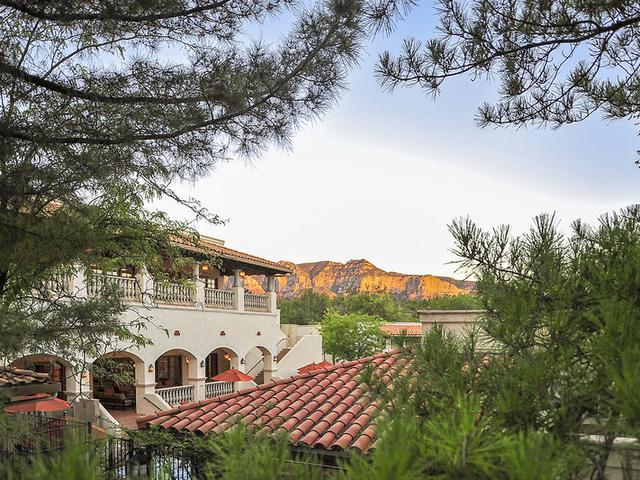 Eingebettet auf einem 22 Hektar großen Grundstück am Oak Creek in Sedona, Arizona, bietet dieses klimatisierte Resort einen ruhigen Rückzugsort am Fuße der Red Rocks. Erkunde verschlungene Wege, kaskadenartige Brunnen und schattige Ecken, nur wenige Schritte von lokalen Geschäften, Restaurants und Galerien entfernt. Eine Vielzahl komfortabler Unterkünfte richtet sich an Outdoor-Enthusiasten. Genieße köstliche Gerichte und erlesene Weine im hoteleigenen Restaurant. Halte deine Fitnessroutine im gut ausgestatteten Fitnessstudio aufrecht, entspanne dich im Swimmingpool oder Spa und lass die Kleinen das Planschbecken und den Spielplatz genießen. Konferenzeinrichtungen und Parkplätze vor Ort richten sich sowohl an Urlaubs- als auch an Geschäftsreisende. Bitte beachte: Gäste müssen mindestens 21 Jahre alt sein, um einzuchecken. Es fällt eine tägliche Resortgebühr von 26, 95 $ + Steuern an. Bei der Ankunft ist eine Kreditkarte für eine Kaution in Höhe von 200 $ erforderlich. Bargeld wird nicht akzeptiert.