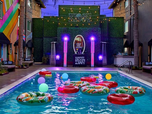 Das Hotel Ziggy liegt ideal am weltberühmten Sunset Strip in West Hollywood und ist ein Boutique-Retreat für eine neue Generation von Reisenden. Dieses modische Hotel strahlt urbane, kantige Raffinesse aus und bringt dich in bequeme Reichweite von Hollywood, Beverly Hills und Downtown Los Angeles. Egal, ob du die Wandmalereien von Rockkonzerten in den Zimmern bewunderst oder das berühmte Nachtleben des Sunset Strip erkundest, das Hotel Ziggy kanalisiert die Energie des Rock 'n' Roll für ein einzigartiges und unvergessliches Gästeerlebnis.