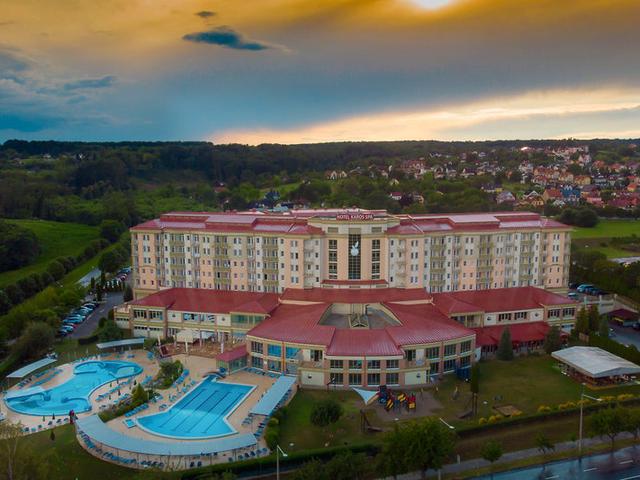 Das 4-Sterne-Hotel Karos Spa liegt idyllisch eingebettet in der malerischen Landschaft von Zalakaros und bietet ideale Voraussetzungen für erholsame und abwechslungsreiche Urlaubstage in Ungarn. In ruhiger Lage genießen Sie hier Komfort und eine entspannte Atmosphäre.