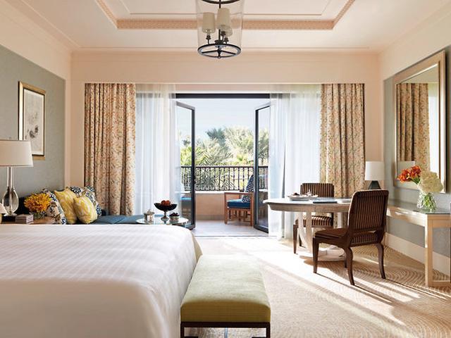 Die Zimmer: Die 237 Zimmer, darunter 49 Suiten, die kürzlich renoviert wurden, sind im zeitgenössischen Design mit arabischen Elementen und modernen Möbeln eingerichtet. Alle Zimmer haben einen Balkon mit Tagesbett und Essecke. Mit Bad, separater Dusche, Föhn, Bademantel, TV, Telefon, WLAN (ohne Gebühr), Safe, Minibar, Klimaanlage. Drei Meter hohe Decken und große Fenster geben den Blick frei auf die üppigen, palmenbepflanzten Gärten, die Pools, den Strand und das Meer oder auf die Skyline von Dubai mit dem Burj Khalifa.