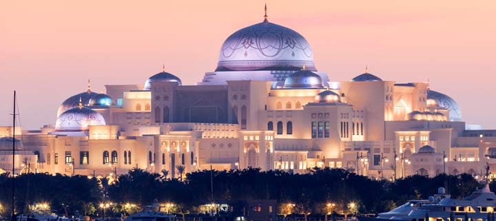 Auch der Präsidentenpalast mutet an, wie ein orientalisches Märchenschloss. Die weißen, mit Gold verzierten Kuppeln leuchten vor dem Blau des Himmels. Eigentlich ist der 2015 erbaute Palast der Sitz der Regierung der Vereinigten Arabischen Emirate und nach so kurzer Zeit bereits eines der Wahrzeichen der Stadt.