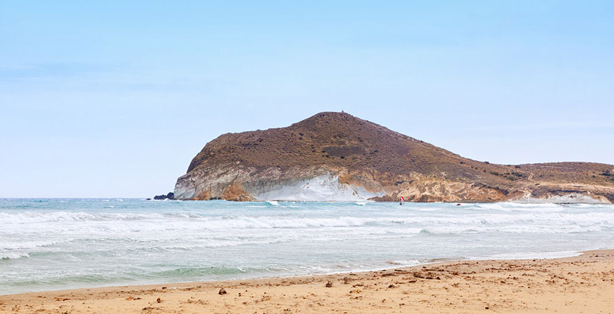 Der Strand befindet sich im Biosphärenreservat Cabo de Gata-Níjar in der Nähe eines Zementwerkes. Das, und der schaurige Name – auf Deutsch „Strand der Toten“ – sollte euch aber nicht davon abhalten diesen Strand inmitten der herrlichen Natur zu besuchen. Der Name kommt wohl aus einer längst vergangenen Zeit, als hier öfters gekenterte Schiffe angespült wurden.