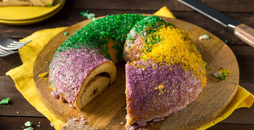 Traditionelles Mardi-Gras-Gebäck King’s Cake