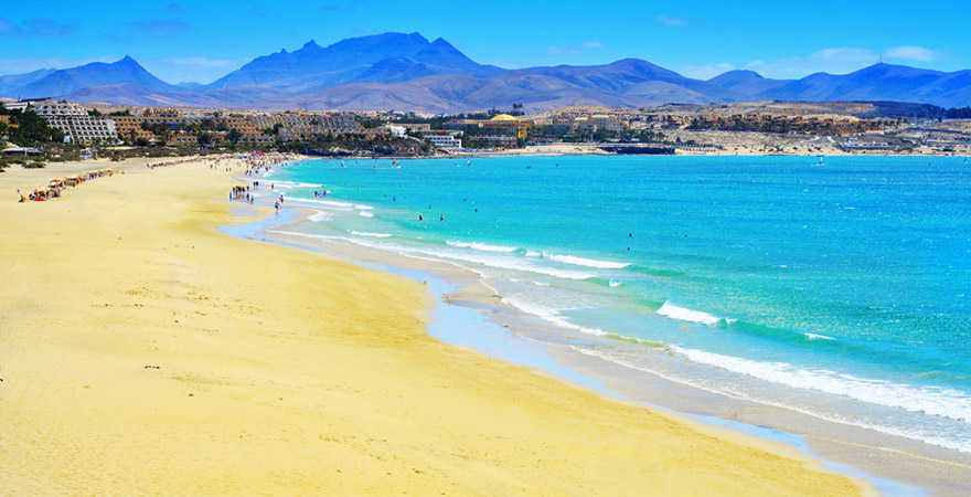 Auf der Kanarischen Insel erwartet euch ein aufregender Einklang aus Sonne, Sand und Meer. Die Küsten bestehen fast komplett aus Stränden vulkanischen Ursprungs, deren schwarzer Sand sich mal mit blütenweißen, mal mit goldgelben Abschnitten abwechselt. Fuerteventuras Strände hat eben Charakter.