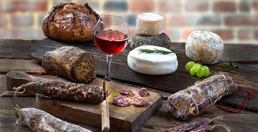 Genauso abwechslungsreich wie die Insel ist auch die Küche von Korsika. Umgeben vom Meer findet ihr auf der Speisekarte der lokalen Restaurants und Cafés viele Gerichte mit frischem Fisch und Meeresfrüchten. Bekannte Spezialitäten mit Fleisch sind Figatellu, eine Trockenwurst aus Schweineleber, verfeinert mit verschiedenen Gewürzen, Knoblauch und Rotwein sowie Civet de sanglier, ein in Tontopf zubereitetes Wildschweinfleisch mit Karotten, Fenchel, Kastanien, Knoblauch und Zwiebeln. Der korsische Käse Brocciu wird auch oft in Füllungen von Ravioli, Krapfen oder Tartes verwendet und als Beilage gereicht. Naschkatzen legen wir einen süßen Kuchen namens Fiadone ans Herz. Dieser besteht aus Brocciokäse, Eiern und Zucker und erhält seinen frischen Geschmack von Zitronenschalen.