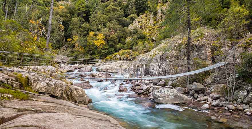 Wandern in Korsika ist ein echtes Erlebnis für die Sinne. Wir empfehlen euch einen Ausflug in das Waldgebiet Forêt de Bonifatu, im Nordwesten der Insel. 20 Kilometer von der Stadt Calvi gelegen, erreicht ihr den Forst am besten mit dem Auto. Ausgehend vom Parkplatz an der Auberge de Foret, sind einige Höhenmeter entlang des Flusses Figarella zu bewältigen. Die schattige Waldlandschaft beheimatet zahlreiche Badestellen, so könnt ihr euch zwischendrin ausruhen und die erholsame Ruhe und Natur in vollen Zügen genießen. Nach einem zweistündigen Fußmarsch erreicht ihr die Caruzzo-Hütte mit Einkehr- und Übernachtungsmöglichkeit.