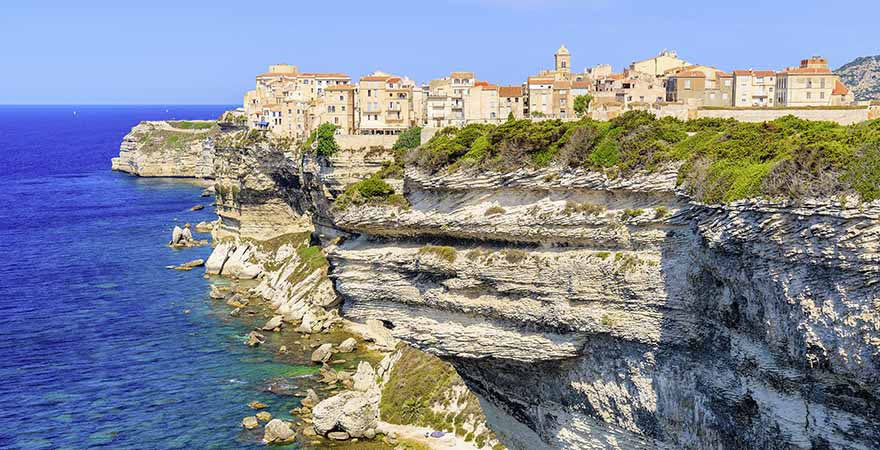 An der südlichsten Spitze Korsikas erwartet euch die von weißen Kliffküsten gesäumte Hafenstadt Bonifacio. Besonders sehenswert ist die mittelalterliche Altstadt, die Haute ville. Diese erstreckt sich in einer Höhe von 70 Metern auf einem halbinselartigen Kalkfelsenplateau, sodass es fast den Anschein macht, die mehrstöckigen Häuser ragen wie von einem Balkon auf das offene Meer hinaus. Romantische Gassen mit Kopfsteinpflaster, urige Kapellen, die sich im Stadtkern verteilen und altertümliche Hausfassaden mit bunten Fensterläden machen den Charme Bonifacios aus.