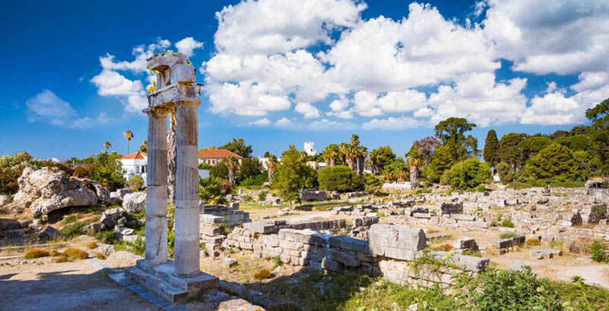 Nahe des Hafens und des Platanenplatzes finden geschichtlich Interessierte in Kos Stadt das Ausgrabungsgelände der Agorá, wo sich bis zu einem schweren Erdbeben im Jahr 1933 das mittelalterliche Stadtzentrum befand. Unter den zerstörten Gebäuden fanden Archäologen Überreste einer antiken Säulenhalle, die im vierten Jahrhundert v.Chr. als Markt- und Versammlungsplatz errichtet wurde. Bei einem Spaziergang durch die Stadt solltet ihr hier einen Zwischenstopp einlegen, um euch die Säulen und Mauerreste anzusehen.