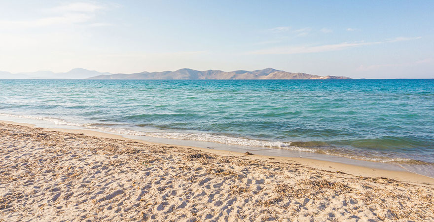 In der Nähe des Dorfes Kefalos befindet sich dieser fotogene Strand. Direkt davor liegt nämlich so richtig malerisch eine kleine Insel mit einer blauweißen Kapelle. Sie ist eine der meistfotografierten Ansichten der Insel. Aber nicht nur wegen der Aussicht lohnt es sich, diesen Strand zu besuchen. Feiner, heller Sand und ein besonders klares Wasser machen ihn auch so zu einem echten Juwel unter den Stränden.