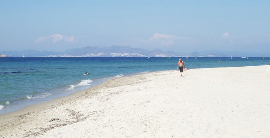 Der Marmari Beach ist quasi die Verlängerung des Tigaki Beach. Die beiden sind getrennt durch den Abfluss des Alikessees. Wenn ihr auf das Wasser schaut, blickt ihr hinüber zur Insel Pserimos und gleich hinter dem Strand wartet eine schöne Dünenlandschaft auf euch. Allerdings weht hier gerne mal ein frisches Lüftchen, was den Strand vor allem bei Wind- und Kite-Surfern beliebt macht.