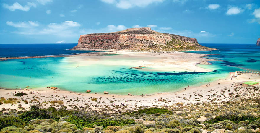 Am nordwestlichen Finger Kretas, inmitten eines Naturschutzgebiets, liegt die bezaubernde Balos-Lagune. Mit dem türkis glitzernden Meer und dem fast weißen Sand ist dieser zweifelsfrei einer der schönsten Strände Griechenlands, obwohl es sich schon beinahe nach Karibik-Urlaub anfühlt. Sandbänke formen eine Lagune, in der ihr im niedrigen, wärmeren Wasser unbeschwert relaxen und planschen könnt. Euren Beitrag zum Naturschutz leistet ihr durch eine kleine Eintrittsgebühr, die man hinsichtlich der einzigartigen Landschaft und Tierwelt jedoch gerne beisteuert. Falken, Mönchsrobben und gelegentlich sogar Meeresschildkröten haben an der Landzunge ihr Habitat.