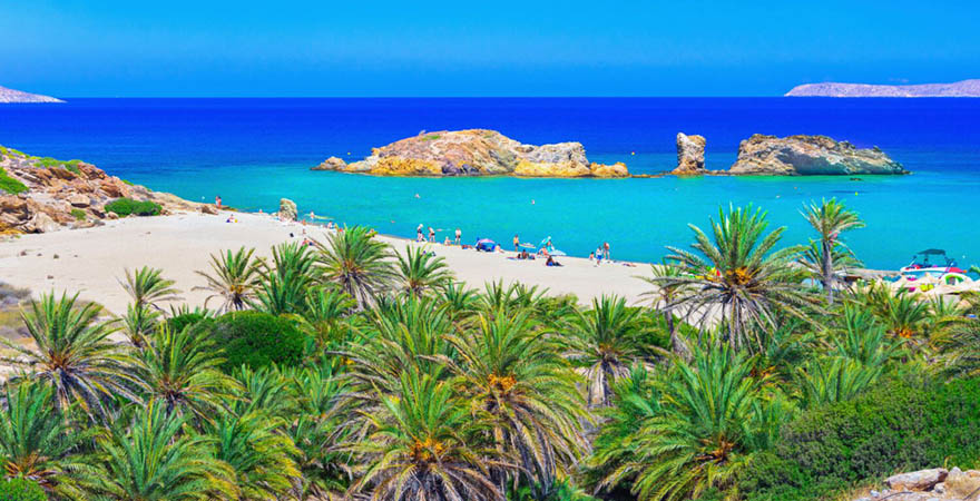 Bilderbuchstrand gefällig? Karibikfeeling pur erwartet euch an der nordöstlichen Spitze der Insel: breiter, weicher Sandstrand und im Hintergrund ein Meer aus Palmen. Der Vai Beach ist übrigens einer von nur zwei natürlichen Palmenstränden auf Kreta. Rund 5000 Dattelpalmen wuchsen der Erzählung nach aus den Kernen, die die Piraten hinter sich an den Strand warfen, als sie einst hier rasteten. Wenn man bedenkt, dass die Bäume bereits ungefähr 2000 Jahre alt sind, sind dafür wohl eher die Phönizier verantwortlich, die damals das Mittelmeer beherrschten. Der größte bekannte Palmenwald Europas steht heute unter strengem Schutz und ist nicht für Besucher zugänglich.