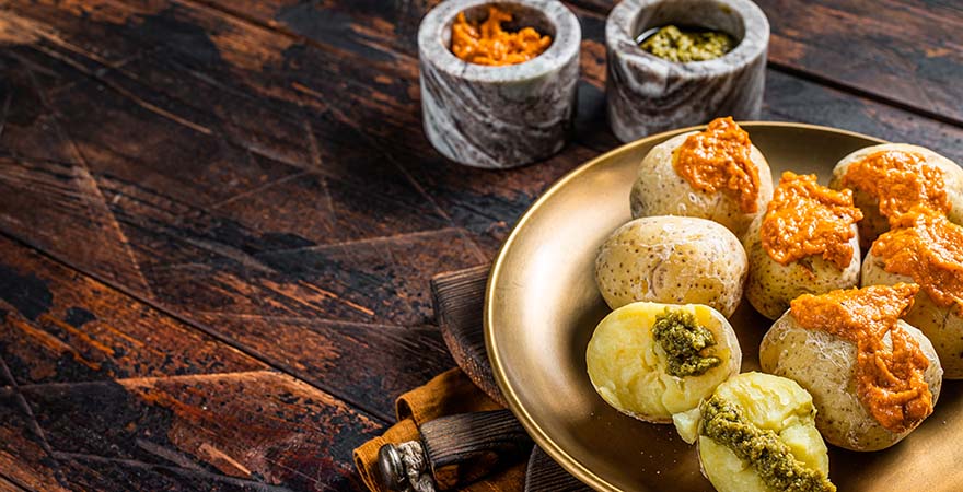 Als kleine Insel in den Weiten des Atlantiks kommen auf Lanzarote viel frischer Fisch und Meeresfrüchte auf den Tisch. Traditionell wird unter anderem Thunfisch, Seehecht, Barsch und Muräne gegessen – am liebsten serviert mit Mojo rojo oder Mojo verde („Rote Sauce“ und „Grüne Sauce“) und Papas arrugadas, jenen schmackhaften Pellkartoffeln mit Salzkruste. Daneben zählen Kichererbseneintopf („Ropa vieja“) und verschiedene Eintöpfe mit Fleisch zu beliebten Speisen. Naschkatzen sollten es sich nicht entgehen lassen Barraquito, Espresso mit Kondensmilch und Likör, Bienmesabe, Mandelcreme gesüßt mit Honig, Quarkkuchen oder verschiedene Pudding-Variationen zu probieren.