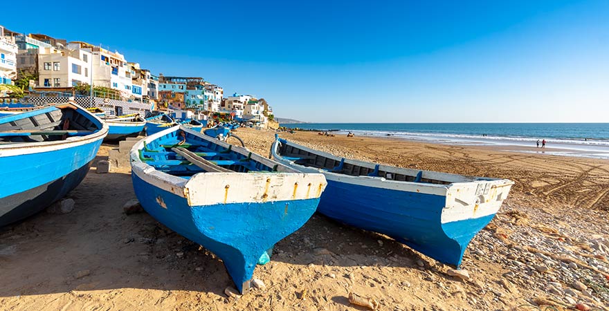 [otw_shortcode_info_box border_type=“bordered“ border_color_class=“otw-orange-border“ border_style=“bordered“]Tipp: Von Safi aus lohnt sich ein Tagesausflug in die kleine Hafenstadt Essaouira. Der wegen seiner weißen Häuser als „weiße Stadt“ und aufgrund der fantastischen Surfbedingungen auch als „windige Stadt“ bekannte Künstlerort ist mit seinem traditionellen Hafen, der aus der portugiesischen Kolonialzeit stammenden Festung, der ungewöhnlich rasterförmigen Medina und dem breiten Strand ideal zum Schlendern und Entspannen. Möchtet ihr dort übernachten, ist das Atlas Essaouira & Spa direkt am Strand und nahe der Altstadt die ideale Wahl.[/otw_shortcode_info_box]3. Der Hafen von Taghazout: Wo die Zeit still steht