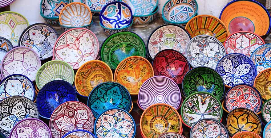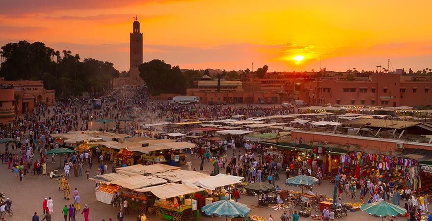 Seid ihr angekommen, gilt die Devise: Schauen, riechen, schmecken. Lasst euch von den Tänzern und Gauklern verzaubern, lauscht abends den Märchenerzählern und Musikern und probiert euch durch die unzähligen Garküchen. Ein Fest für alle Sinne, das noch weitergeht, wenn ihr durch die verwinkelten Gassen der Souks an bunten und duftenden Auslagen vorbeispaziert.