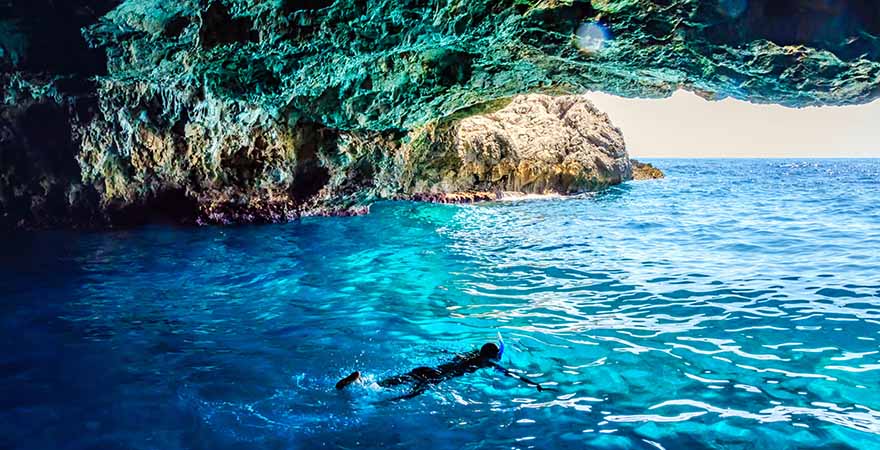 Die Unterwasserwelt rund um Montenegro zeigt sich vielfältig, bunt und wunderschön. Wie gut, dass die glasklare Adria beste Bedingungen zum Schnorcheln bietet. So könnt ihr dort in Ruhe die Meeresbewohner wie Anemonen und Seeigel beobachten, Höhlen erforschen und Schiffswracks entdecken. Eigentlich eignet sich fast jede ruhige Bucht zum Untertauchen, die Strände Mogren, Lučice, Petrovac, Drobni Pijesak und Jaz sind besonders beliebt. Auf der Halbinsel Luštica bietet die Blaue Höhle in der Bucht von Kotor ein ganz spezielles Schnorchel-Erlebnis. An den touristisch erschlossenen Orten könnt ihr an geführten Touren und Kursen teilnehmen sowie Equipment ausleihen.