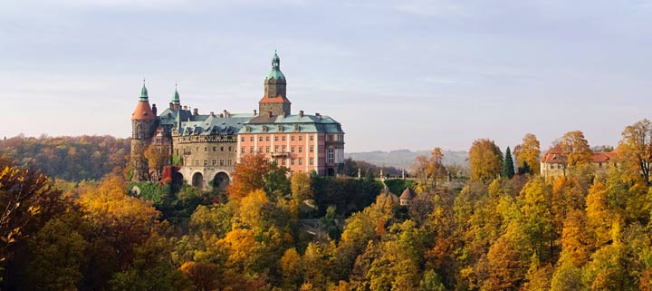 Nördlich der Großstadt Walbrzych (unweit zur tschechischen Grenze gelegen) könnt ihr euch mit Schloss Fürstenstein ein echtes „Märchenschloss“ ansehen. Der Schlosskomplex liegt umgeben von dichtem Wald auf einem stattlichen Berg. Anfahrtswege und Parkplätze sind jedoch reichlich vorhanden.