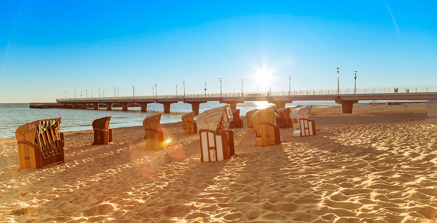 Der Hauptstrand der Stadt befindet sich auf Usedom. Er ist etwa drei Kilometer lang und sehr breit, was daran liegt, dass die Ostsee auf der deutschen Seite Sand „klaut“ und ihn an diesem Strand ablegt. Weitere Strände mit einer Gesamtlänge von fast 16 Kilometern findet ihr auf der Insel Wollin, auf der die östlichen Stadtviertel von Swinemünde liegen. Da weite Teile von Wollin von einem Nationalpark eingenommen werden, findet ihr dort aber keinerlei Infrastruktur. Baden ist aber erlaubt.