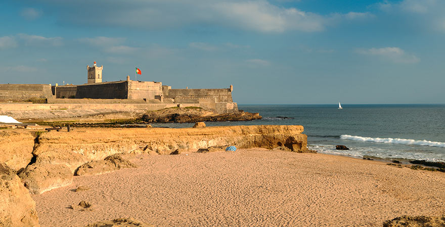 Am Strand von Carcavelos ist die Festung São Julião da Barra ein Blickfang