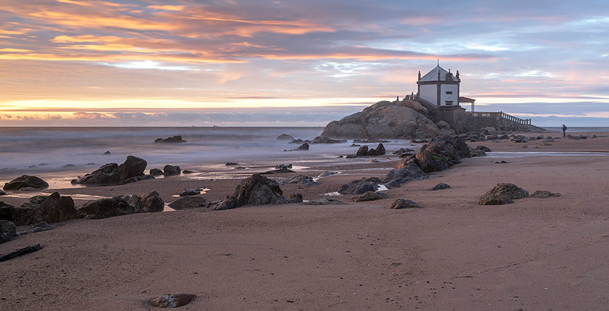 Wenn ihr dem Trubel an Portos Stadtstrand Praia de Matosinhos entgehen und einen Tagesausflug an einen ruhigen, aber dennoch gut erschlossenen Strand unternehmen möchtet, empfehlen wir einen Ausflug an den Strand Praia de Miramar etwa 14 Kilometer südlich von Porto. Der breite, ruhige Strand ist eine Naturschönheit und lädt mit seinem sauberen Sand zum Spazieren, Entspannen und Sandburgenbauen ein. Er ist in Anlehnung an die hübsche Kapelle in der Mitte des Strandes auch als Praia do Senhor da Pedra bekannt.