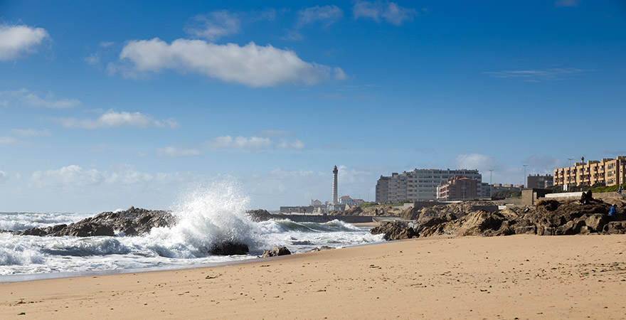 Porto, zweitgrößte Stadt des Landes und ein beliebtes Ziel für Städtereisen, liegt inmitten der Costa Verde mit ihren goldenen Sandstränden und mächtigen Wellen. Wenn ihr eine Pause von malerischen Stadtspaziergängen braucht und euch den Wind um die Nase wehen lassen möchtet, macht es wie die Einwohner Portos: Steigt in der Innenstadt Portos einfach in die U-Bahn-Linie A oder in den Bus 500 – und fast direkt an der Strandpromenade wieder aus.