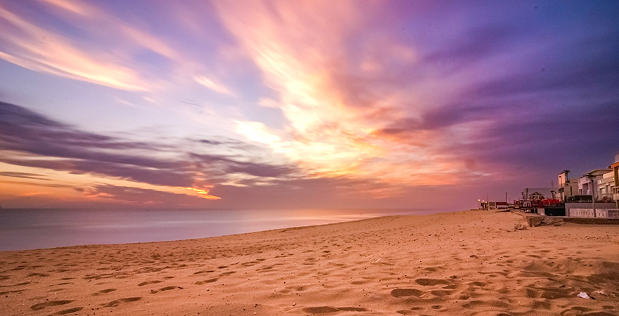 Der mit dem Gütesiegel „Blaue Flagge“ ausgezeichnete Strand ist etwa sechs Kilometer lang und wirkt dadurch nie überfüllt. Hier lässt es sich herrlich joggen oder spazieren. Vor allem am Abend empfiehlt sich ein romantischer Strandspaziergang, während die Natur von der untergehenden Sonne in bezaubernde Farben getaucht wird.