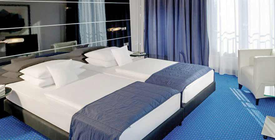 Wie wäre es zum Beispiel nach einer ausgiebigen Besichtigungstour mit einem Aufenthalt im Spa des Hotels? Verwöhnt euch mit den Wohlfühlmassage- und Schönheitspflegeprogrammen, bevor es am nächsten Tag wieder zu einer spannenden Entdeckungstour geht! Auch für das kulinarische Wohl ist gesorgt: das Hotel bietet mit dem Le Bistro, der Bierstube Fritze und der Jimmy’s LA Bar gleich mehrere Möglichkeiten, gut zu essen!