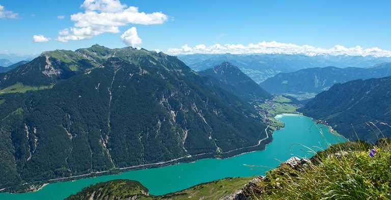 Der Achensee in Tirol ist sicherlich einer der abwechslungsreichsten Seen in den Alpen. Beim Stand Up Paddling, Kanufahren, Kitesurfen oder Segeln lässt das „Tiroler Meer“ in der Berglandschaft des Karwendel- und Rofangebirges die Herzen von Wassersportlern höherschlagen. Wer sich von der Aussicht auf etwa 18 °C kaltes Wasser nicht abschrecken lässt, kann im größten See Tirols dank der hervorragenden Wasserqualität im Sommer auch mutig untertauchen – die perfekte Abkühlung nach der ca. 21 Kilometer langen Route um den See oder einer Klettertour.