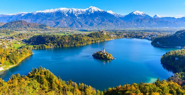 [otw_shortcode_info_box border_type=“bordered“ border_color_class=“otw-orange-border“ border_style=“bordered“]Tipp:Wandert während des Sonnenaufgangs von der Stadt Bled am See entlang bis zum Aussichtspunkt Ojstrica und genießt in der Morgendämmerung den wohl fesselndsten Blick über den Bleder See.[/otw_shortcode_info_box]Bleder See im Überblick