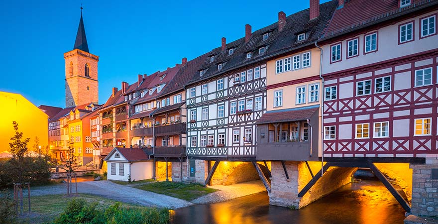 Florenz hat die Ponte Vecchio, Erfurt hat die Krämerbrücke. Diese Brücke ist die längste durchgehend mit Häusern bebaute Brücke in Europa und eines der Wahrzeichen der Stadt. Wie im Rest der Altstadt bestaunt ihr hier wunderschöne Fachwerkhäuser und wandelt auf geschichtsträchtigen Straßen. Am Rande der Altstadt könnt ihr das evangelische Augustinerkloster besichtigen, in das Martin Luther im Jahr 1505 als Mönch eintrat.