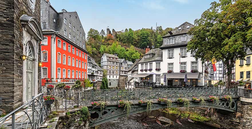 Ganz im Westen Deutschlands an der Grenze zu Belgien liegt dieses mittelalterliche Schmuckkästchen. Die Altstadt verzaubert mit wunderschönen Fachwerkhäusern und bietet pure Mittelalteridylle. Im 18. Jahrhundert entstand hier eine Tuchmacherindustrie und das Monschauer Wolltuch war in ganz Europa heiß begehrt. Das Rote Haus ist ein typisches Patrizierhaus, das das Leben der reichen Tuchmacher darstellt.