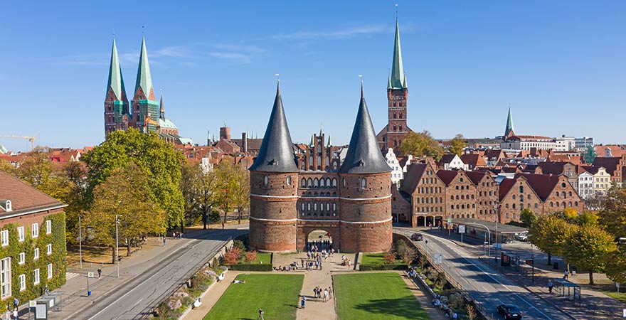 Auch unsere nächste Stadt liegt an der Ostsee. Zumindest der Stadtteil Travemünde. Das historische Zentrum der Hansestadt Lübeck befindet sich auf einer Insel in der Trave und ist bereits seit 1987 UNESCO-Weltkulturerbe. Auf dieser Insel bummelt ihr durch verwinkelte Gänge und malerische Stiftshöfe und bewundert die typische Backsteinarchitektur. Dabei ist das Viertel aber beileibe kein Freilichtmuseum. Eine Vielzahl an kleinen Boutiquen, Restaurants und Cafés sorgen für eine lebendige Atmosphäre.